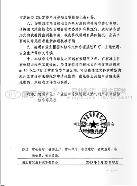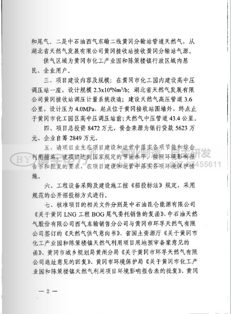 近日湖北省黃岡市化工產業園和陳策樓鎮天然氣利用項目核準的批復。