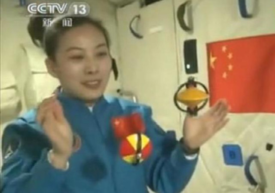 圖注:2013年,神舟十號航天員王亞平在天宮一號里進行太空授課,演示小陀螺在失重狀態下的行為。