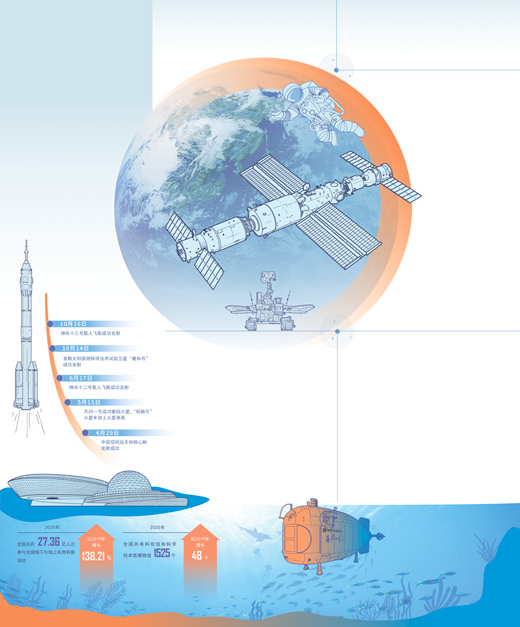 神舟十二號、神舟十三號載人航天任務相繼實施,中國人首次進入自己的空間站;我國首次火星探測任務天問一號探測器成功著陸火星;“羲和號”實現太陽探測零的突破……逐夢九天,浩瀚蒼穹留下越來越多“中國足跡”。